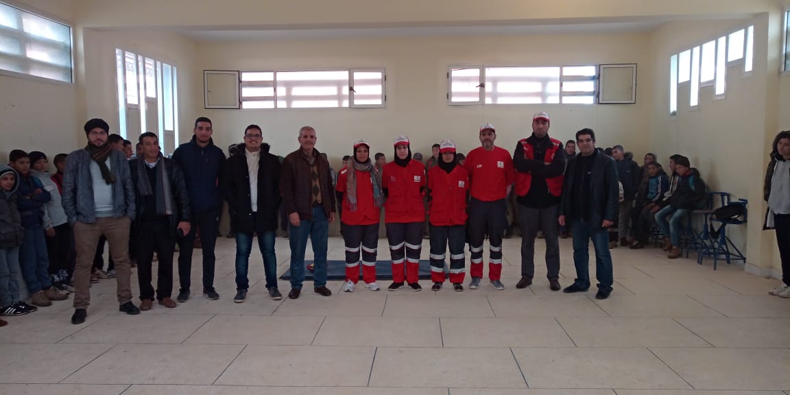 وفي هذا الصدد حلت بثانوية اولاد عيسى الاعدادية مجموعة من المؤطرين المنقذين من درجات مختلفة مجهزين بعدة معدات، والتابعين للمكتب المحلي للهلال الأحمر المغربي بوادي زم،وذلك من أجل الإشراف المباشر على إجراء مجموعة من التداريب التطبيقية،و لتمرير أيضا بعض الأساليب والتقنيات لاكتساب المهارات في التدخل الاستعجالي من أجل الإسعاف والإنقاذ . حيث استفاد منها تلاميذ و تلميذات المؤسسة.