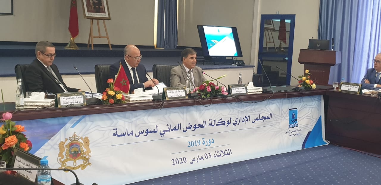 انعقد صباح اليوم الثلاثاء 03 مارس 2020 بمقر ولاية جهة سوس ماسة، أشغال اجتماع مجلس إدارة وكالة الحوض المائي لسوس ماسة برسم سنة 2019، بحضور كل من السيد الكاتب العام لوزارة التجهيز والنقل واللوجستيك والماء، والسيد والي جهة سوس ماسة عامل عمالة اكادير إداوتنان.