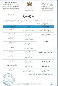 أجرت وزارة الثقافة والشباب والرياضة حركة انتقالية في المديريات الإقليمية منها أو الجهوية، والتي عرفت تغييرات كبيرة على مستوى إدارتها .