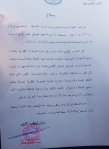 اصدر اليوم المجلس الإقليمى ل طاطا بلاغا توصلت جريدة فاص بنسخة منه جاء فيه ” في إطار التعبئة الوطنية للتصدي لوباء كورونا المستجد (covid _19 ) والحد من انتشاره و تداعياته ، ومساهمة منه في المجهود الوطني القائم والذي انخرطت فيه جميع المؤسسات العامة والخاصة وعموم المواطنات والمواطنين .