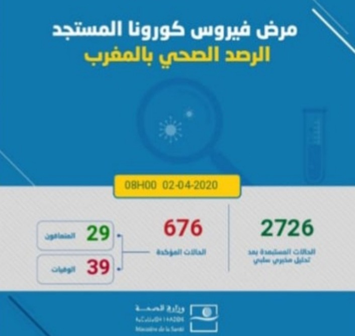 وأضافت الوزارة، أن عدد الحالات المستبعدة بلغ 2726 حالة و عدد الحالات التي تماثلت للشفاء من المرض حتى الآن، وفق المصدر ذاته، في 29 حالة، فيما استقر عدد حالات الوفاة في 39 حالة.