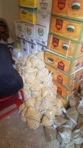 -حيث بلغت الكميات الموزعة لحد الآن ما يناهز 2000 قفة بغلاف مالي ناهز : 360000 الف درهم ، بمساهمة جمعيات المجتمع المدني المحسنون التجار.