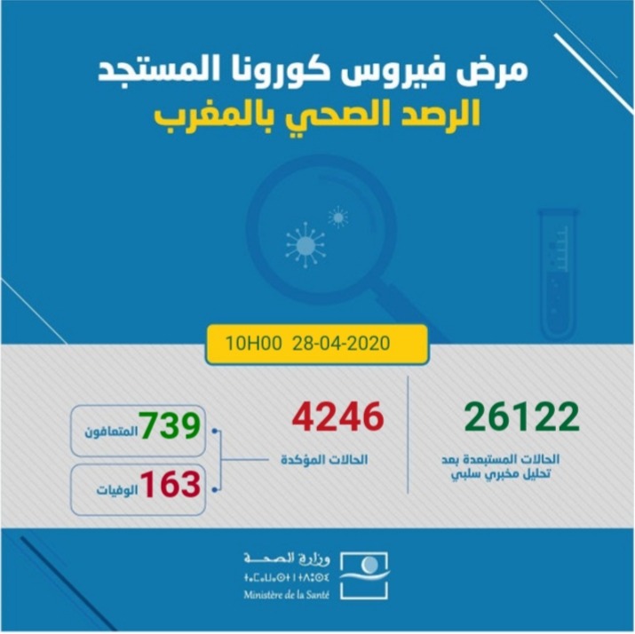 و صل عدد الحالات التي تماثلت للشفاء من المرض 739 حالة بعد تسجيل 44 حالات شفاء جديدة، فيما ارتفع عدد حالات الوفاة إلى 163 حالة بعد تسجيل حالة وفاة جديدة