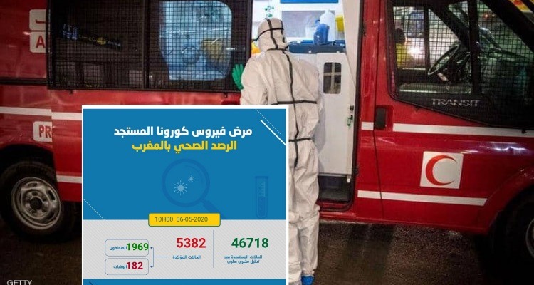 أعلنت وزارة الصحة، عن حصيلة الإصابات المؤكدة الجديدة بفيروس كورونا بالمغرب، حيث بلغت 5382 حالة، بعد تسجيل 163 إصابة مؤكدة، من الساعة الرابعة بعد زوال الثلاثاء 05 ماي إلى غاية الساعة العاشرة من صباح الأربعاء 06 ماي.