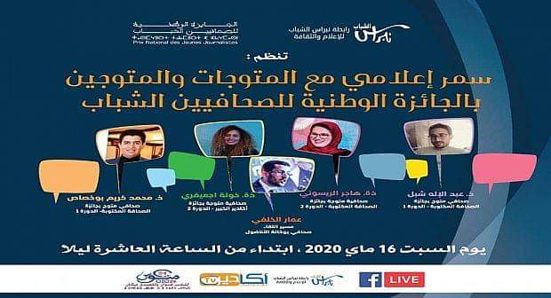 تنظم رابطة نبراس الشباب للإعلام والثقافة سمر إعلامي حول “الإعلام في زمن كورونا و الادوار التي يلعبها الصحفي في ظل الأزمة”، وذلك يوم السبت 16ماي 2020 ابتداء من الساعة العاشرة مساءً.