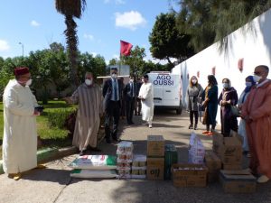 تفعيلا للبلاغ الصادر عن المكتب الجهوي للودادية الحسنية للقضاة باكادير بتاريخ 19 رمضان 1441 الموافق ليوم 13 ماي 2020 وتكريسا لقيم التضامن القضائي التي دابت الودادية الحسنية للقضاة على ترسيخ اعرافه بمناسبة هذا الشهر الفضيل وعلى إثر الظرف الاستثنائي الذي تعرفه بلادنا بسبب جائح كورونا كوفيد 19 , قام السيد رئيس المكتب الجهوي للودادية الحسنية للقضاة بأكادير مصحوبا بالسيد الرئيس الاول لمحكمة الاستئناف بأكادير والمسؤولين القضائيين بالمحكمة الابتدائية باكادير وأعضاء المكتبين الجهوي و الجمع العام بالاشراف على عملية وضع مجموعة من المواد الغذائية والحاجيات المقتناة رهن إشارة المدارء بكل من المؤسسة الاجتماعية دار الراحة لرعاية المسنين بأكادير و مركز حماية الطفولة ذكور و إناث، وقد تمت هذه المبادرة في ظروف جيدة و في إحترام تام لضوابط الحجر الصحي بما في ذلك احترام مسافة الامان .