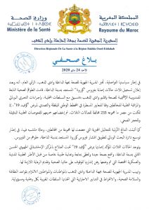 أكدت وزارة الصحة تسجيل 27 حالة إصابة جديدة فقط بفيروس كورونا المستجد حتى الرابعة من مساء يومه الاحد 24 ماي 2020, ليرتفع العدد الإجمالي لحالات الإصابة المؤكدة بالفيروس كورونا المستجد كوفيد 19 بالمملكة إلى 7433 حالة.