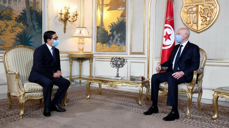 حل ناصر بوريطة وزير الشؤون الخارجية والتعاون الإفريقي والمغاربة المقيمين بالخارج، اليوم الأربعاء بتونس، حيث نقل رسالة شفوية من الملك محمد السادس نصره الله إلى الرئيس التونسي قيس سعيد خلال استقباله له بقصر قرطاج.