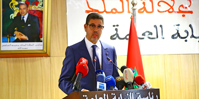 وتعهد بمواصلة العمل على “حفظ استقلال النيابة العامة والإسهام إلى جانب باقي مؤسسات الدولة في الدفاع عن المصالح العليا وصون حقوق الأفراد والجماعات وحماية مقدسات البلاد ومكافحة الجريمة وتتبع المجرمين وملاحقتهم والحد من أنشطتهم والحرص على التطبيق السليم للقانون في حقهم تطبيقا يحقق العدالة والإنصاف ويجسد التنزيل الحقيقي لضمانات المحاكمة العادلة”.