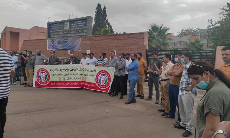 نفذ عدد من الأطر الإدارية المتدربة، اليوم الاثنين 13 شتنبر 2021، وقفات احتجاجية أمام بعض الأكاديميات الجهوية للتربية والتكوين وأمام المراكز الجهوية لمهن التربية والتكوين بالمغرب، ضد ما أسموه “الغموض الذي يلف السنة الثانية من التكوين”، وما تعرضوا له من استغلال وحيف من خلال توزيعهم غير العادل على مؤسسات التدريب، ليجدوا أنفسهم بعيدين كل البعد عما يسمى التأهيل الميداني، ويكتشفوا بأنهم ليسوا سوى لسد خصاص مهول تعاني منه وزارة التربية الوطنية على مستوى الأطر الإدارية لا غير.
