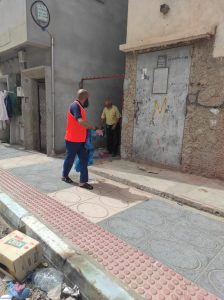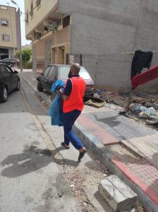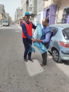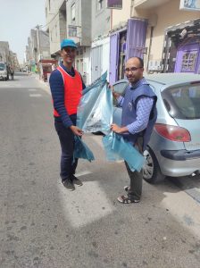 حيث قام اعضاء الجمعية وبعض الشباب المتطوعين بدق أبواب المنازل ، و توزيع أكياس بلاستيكية صفراء وزرقاء اللون على أصحابها، كما تم حثهم من خلالها على الحفاظ على نظافة حيهم يوم عيد الأضحى، وشددوا على ضرورة رمي مخلفات الخروف في الأكياس ووضعها بعد ذلك بشكل سليم داخل الحاويات.