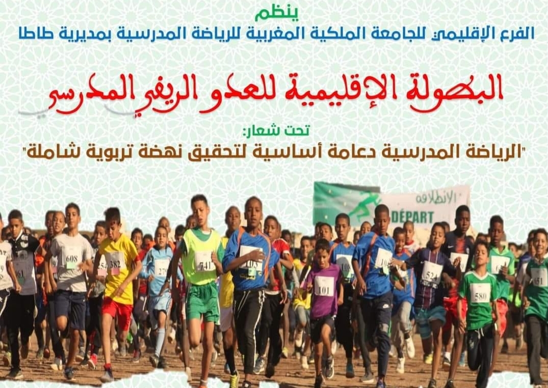 احتفاء بالذكرى 47 للمسيرة الخضراء المظفرة والذكرى 67 لعيد الاستقلال المجيد وتحت إشراف المديرية الاقليمية للاكاديمية الجهوية للتربية والتكوين بجهة سوس ماسة بطاطا،وبتعاون مع كل من عمالة طاطا والمجلس الإقليمي لطاطا والمجلس الجماعي لطاطا، ينظم الفرع الإقليمي للجامعة الملكية المغربية للرياضة المدرسية بمديرية طاطا البطولة الاقليمية للعدو الريفي المدرسي، تحت شعار “الرياضة المدرسية دعامة أساسية لتحقيق نهضة تربوية شاملة” يوم الاربعاء 16 نونبر 2022 ابتداء من الساعة الثامنة والنصف صباحا، بالمطاف المجاور لثانوية محمد السادس التأهيلية بطاطا