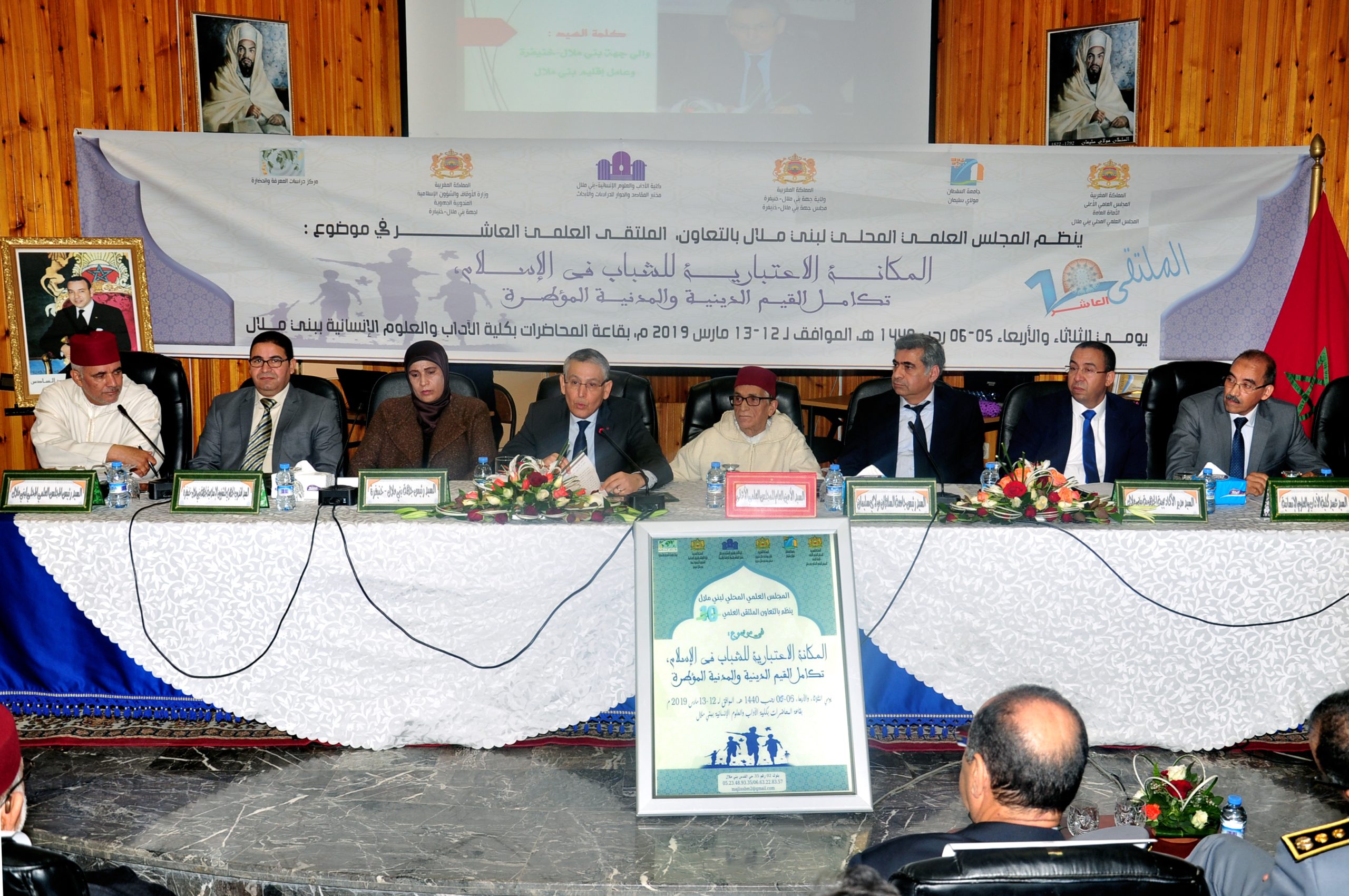 ثم حضر الجلسة الافتتاحية لهذا الملتقى العلمي كل من رئيس مجلس جهة بني ملال-خنيفرة، ونائب رئيس جامعة السلطان مولاي سليمان، والمندوب الجهوي للشؤون الإسلامية، وكذا أساتذة جامعيين وأعضاء المجلس العلمي المحلي لبني ملال.