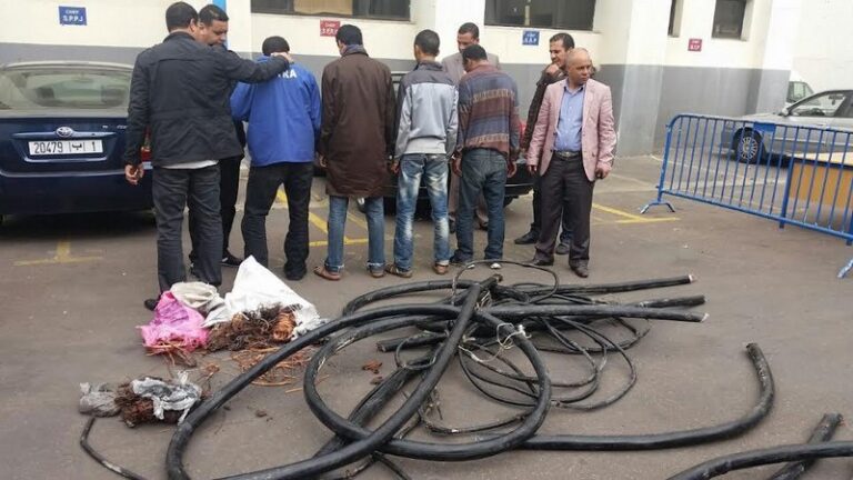 أفاد مصدر أمني بأن عناصر فرقة الشرطة القضائية بالمنطقة الإقليمية للأمن بمدينة بن سليمان، تمكنت أمس الثلاثاء، من توقيف شخصين يبلغان من العمر 29 و35 سنة، وذلك للاشتباه في تورطهما في قضية تتعلق بسرقة الأسلاك النحاسية المستعملة في البنية التحتية لشبكة الاتصالات.