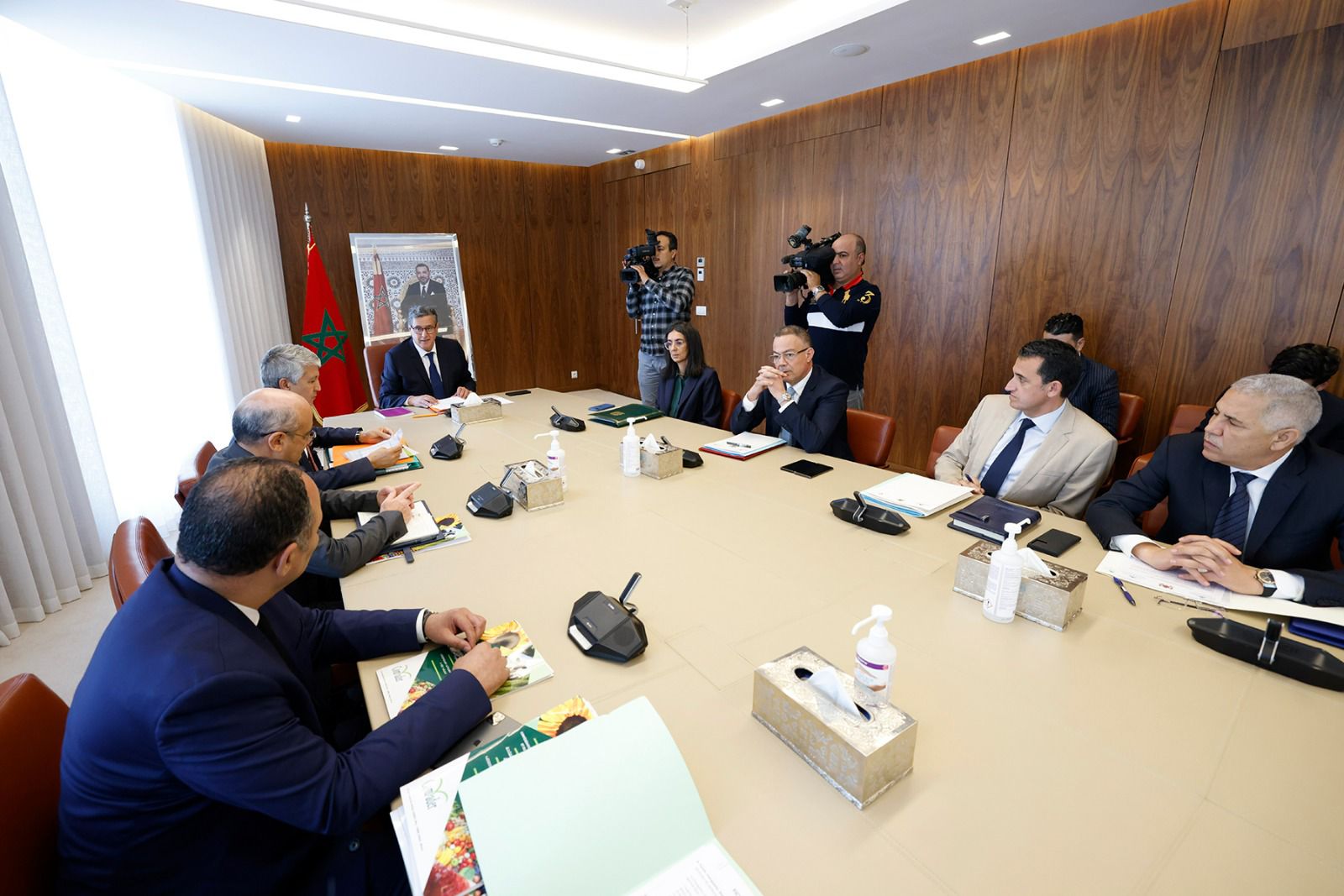 أجرى رئيس الحكومة السيد عزيز أخنوش، اليوم الجمعة في الرباط، سلسلة اجتماعات مع ممثلي الكونفدرالية المغربية للفلاحة والتنمية القروية(COMADER)، وممثلي الفيدرالية البيمهنية المغربية لإنتاج وتصدير الخضر والفواكه (FIFEL)، ورؤساء الغرف الفلاحية، بحضور كل من السيدة نادية فتاح، وزيرة الاقتصاد والمالية، والسيد محمد صديقي، وزير الفلاحة والصيد البحري والتنمية القروية والمياه والغابات، والسيد فوزي لقجع، الوزير المنتدب لدى وزيرة الاقتصاد والمالية، المكلف بالميزانية.