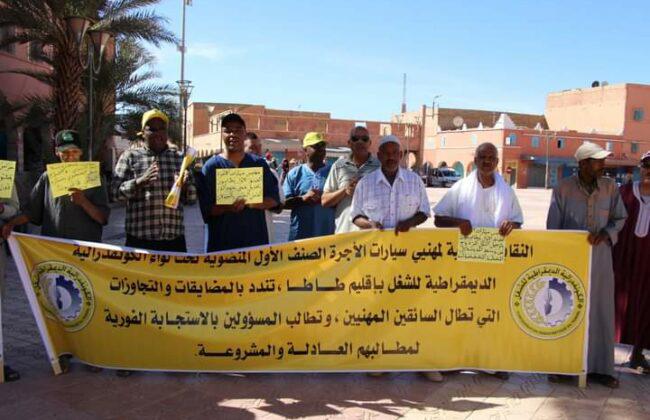 البيان أكدت فيه النقابة الوطنية لسيارات الأجرة الصنف الأول بإقليم طاطا، أسمته ” تمادي رئيس المنطقة الأمنية بطاطا في الهجوم الممنهج والمقصود تجاه غالبية المهنيين، بالرغم من تعليمات عامل الإقليم له في اجتماع مسؤول ورسمي مع نقابتنا، بالتعامل المرن والمحترم معهم” معلنة تعليق الوقفة الاحتجاجية بجماعة تيسينت التي كانت مقررة يوم الثلاثاء 20 فبراير 2024، ابتداء من العاشرة صباحا، بعد تدخل مباشر من عامل الإقليم بضرورة عقد دورة استثنائية للمجلس الجماعي لتخفيض الرسوم الجبائي الخاص بسيارات الأجرة الصنف الأول بقيادة تيسينت، كما عبرت عن ستنكارها الشديد لصنوف الحكرة المستمرة والمتواصلة، الممارسة على مهنيي سيارات الأجرة الصنف الأول في تحد صارخ لتعليمات عامل الإقليم؛ والتي كان آخر فصولها سحب رخصة الثقة لمهني ذو وضع اجتماعي صعب، ويتتبع نظاما علاجيا لحالته المرضية سيزيد من مصاريفه المادية المفقودة بسبب هذا التعسف، كما أعلنت تضامنها المطلق واللامشروط مع مهنيي سيارات الأجرة الصنف الأول دفاعا عن حقوقهم ورفضا للحكرة والاستقواء الممارس عليهم من أصحاب النفوذ والحظوة، منددة بصنوف “التضييق الممارس على عضو المكتب الإقليمي للنقابة مولاي علي الحسيني، ”