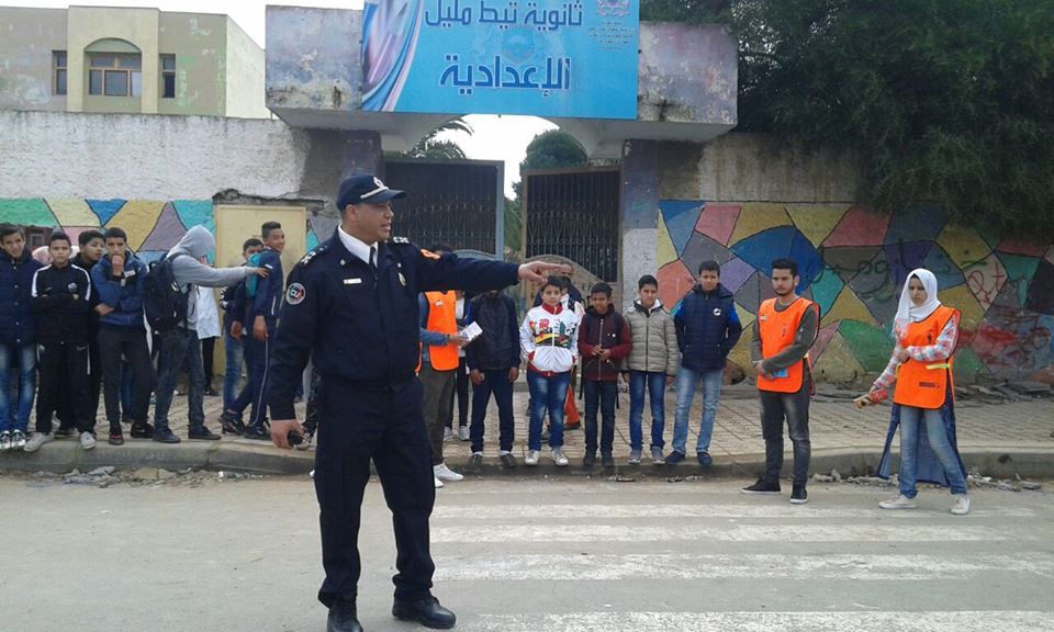 حيث قام موظفات وموظفو الشرطة العاملون بفرق السير الطرقي ومصالح حوادث السير بمباشرة حملات التوعية ، والتحسيس لفائدة التلاميذ ومستعملي الطريق ومهنيي النقل والمستخدمين بمراكز تعليم السياقة.