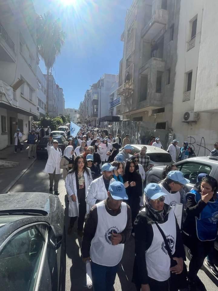 وأمام استمرار وزارة الصحة والحكومة في تجاهل كل الرسائل الرمزية والمباشرة الداعية للاستجابة للمطالب المادية والمهنية العادلة والمشروعة لنساء ورجال الصحة والالتزام بمحاضر الاجتماعات والاتفاقات الرسمية وحل النقاط الخلافية والملفات العالقة وزرع بوادر الثقة المفتقدة غالبا في الأوساط الصحية جراء السياسات العمومية الأحادية المتبعة في القطاع، وحماية حقوق ومكتسبات موظفات وموظفي القطاع المضمنة في النظام الأساسي العام للوظيفة العمومية وتعزيزها وتطويرها وصون الحق البديهي لكافة الموظفات والموظفين في الاختيار بين النقل أو الإلحاق بنظام المجموعات الصحية الترابية، وتحسين أوضاعهم المادية والمهنية.