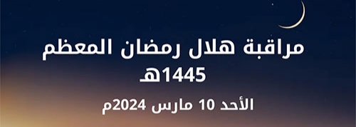 وفي هذا الصدد، أنهت الوزارة إلى علم القضاة ومندوبي الشؤون الإسلامية بالمملكة، أن مراقبة هلال شهر رمضان المعظم ستكون مساء يوم الأحد 29 شعبان 1445هـ موافق 10 مارس 2024م. راجية منهم أن يخبروها بثبوت أو عدم ثبوت رؤية الهلال..