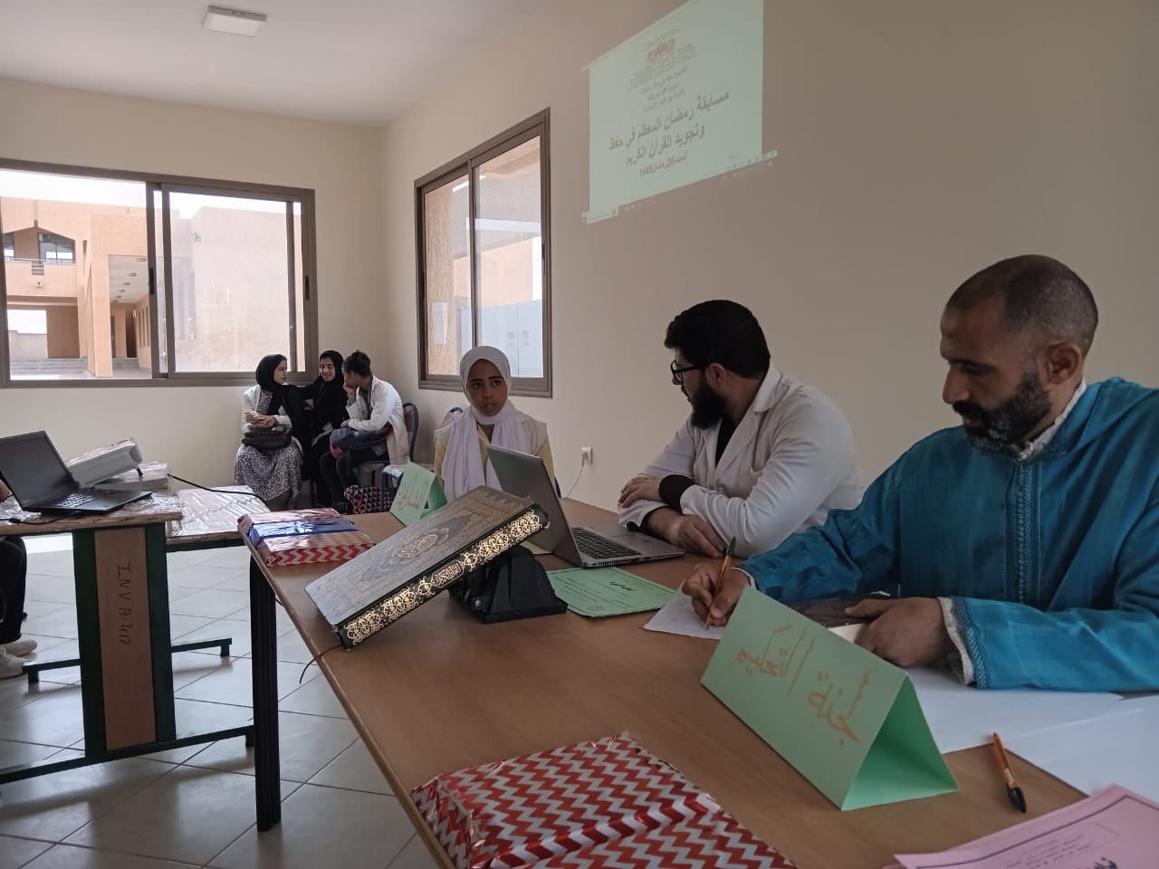 تنزيلا لمشاريع القانون الإطار 51.17 وخاصة المشروع 10 والمتعلق بالإرتقاء بالحياة المدرسية ، وتفعيلا لخارطة الطريق 2026-2022 ؛ وتنزيلا لبرنامج العمل السنوي للأندية التربوية ؛ و بمناسبة ليلة القدر المباركة ، و سيرا على نهج السنة الحميدة في إحياء مجالس القرآن الكريم في هذا الشهر المبارك ، نظمت ثانوية عين قيشر الاعدادية اليوم السبت 6 أبريل الجاري مسابقة في تجويد وحفظ القرآن الكريم لفائدة تلاميذ وتلميذات المؤسسة ، وذلك لربط هذه النفوس الطرية بالقرآن الكريم وتنوير أسماعهم وأبصارهم وقلوبهم بنوره.