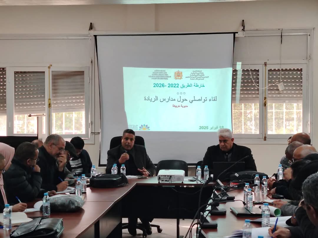 في إطار تنزيل الإطار الإجرائي لخارطة الطريق 2022/2026، خاصة البرنامج المندمج رقم2 في شقه المتعلق بمؤسسات الريادة، وبالهدف الإستراتيجي الثاني الذي يهم التحكم في التعلمات من طرف تلميذات وتلاميذ السلك الابتدائي، نظمت المديرية الإقليمية لوزارة التربية الوطنية والتعليم الأولي والرياضة بخريبكة لقاء تواصليا حول مؤسسات الريادة بالسلك الابتدائي مع السيدات والسادة رؤساء المؤسسات التعليمية الابتدائية، برئاسة السيد المدير الإقليمي محمد أجود ، وبحضور السيدة والسادة رؤساء المصالح بالمديرية.