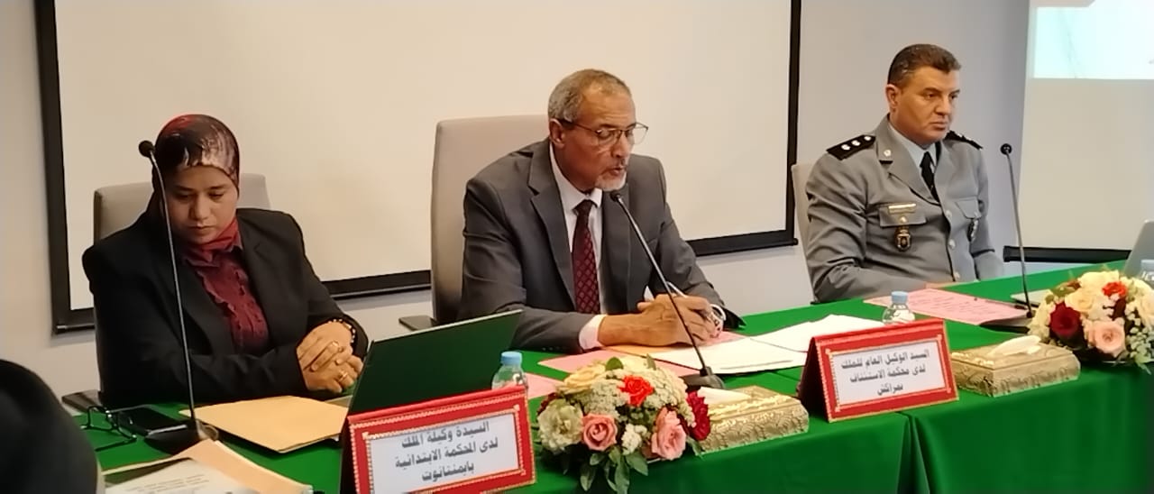 دورة تكوينية لفائدة السادة قضاة النيابة العامة وضباط الشرطة القضائية بالدائرة القضائية لمحكمة الاستئناف بمراكش في موضوع: ” تعزيز الثقة في البحث الجنائي وتيسير الولولوج الى العدالة”