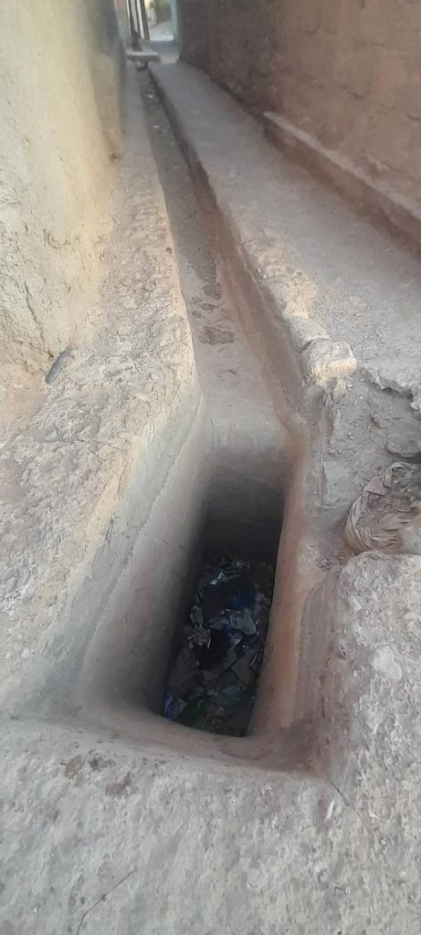 ✅03- المساحة الخضراء(الحديقة العمومية ) الوحيدة بالشارع العمومي بمركز جماعة تسينت من الجهتين والتي يمر بجانبها كل مسافر من طاطا عبر جماعة تسينت إلى فم زكيد، زاكورة ورزازات ومراكش ..(. والذي بإمكانه الوقوف لتوان معدودة واكتشاف وضعها المؤلم والمخجل )والتي يعود تاريخها إلى عشرات السنين ( منذ فترة الاستعمار الفرنسي ) ورغم أنها تحتاج إلى تأهيل منذ مدة طويلة كمتنفس للساكنة بجميع فئاتها وخصوصا الأطفال وكمكسب طبيعي رفع من جاذبية المنطقة، إلى جانب دورها الحيوي بيئيا وصحيا ، اليوم ومنذ فيضانات شتنبر 2024 بدون ماء للري !!!. ( أنظر الساقية التي ترويها )