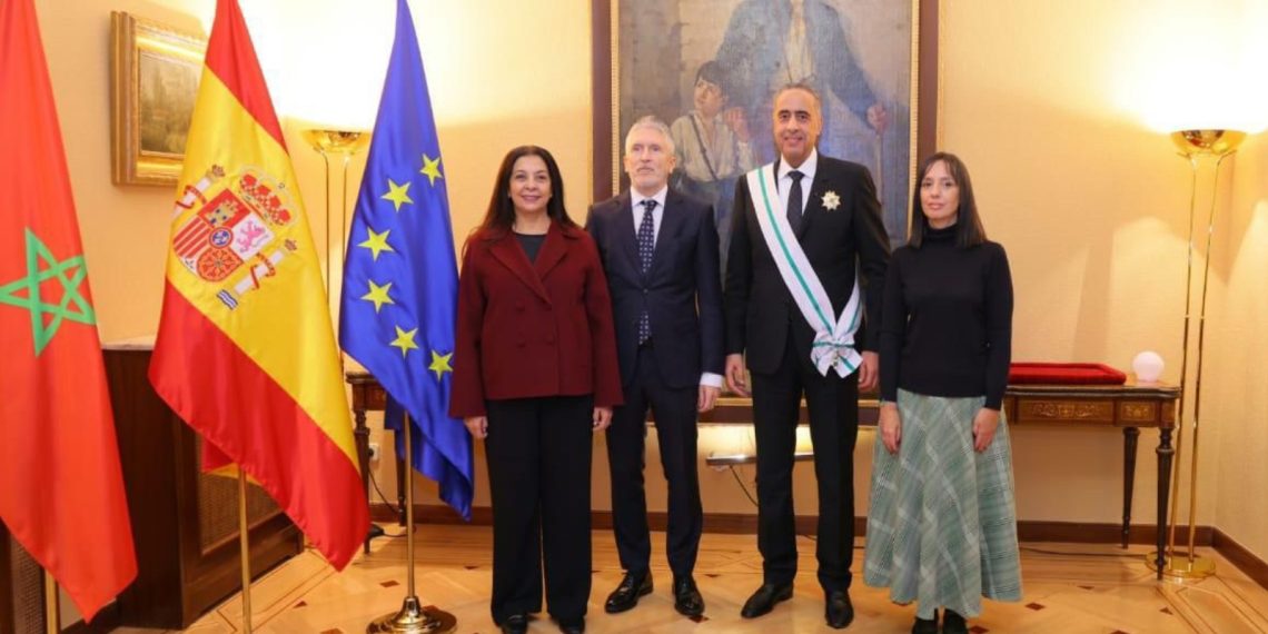 أشرف وزير الداخلية الإسباني فرناندو غراندي مارلاسكا، اليوم الثلاثاء، بالعاصمة الإسبانية مدريد، على الحفل الرسمي لتوشيح المدير العام للأمن الوطني ولمراقبة التراب الوطني السيد عبد اللطيف حموشي بوسام الصليب الأكبر للاستحقاق للحرس المدني، الذي يعد أرفع وأسمى وسام تمنحه هذه المؤسسة الأمنية للشخصيات الأجنبية.